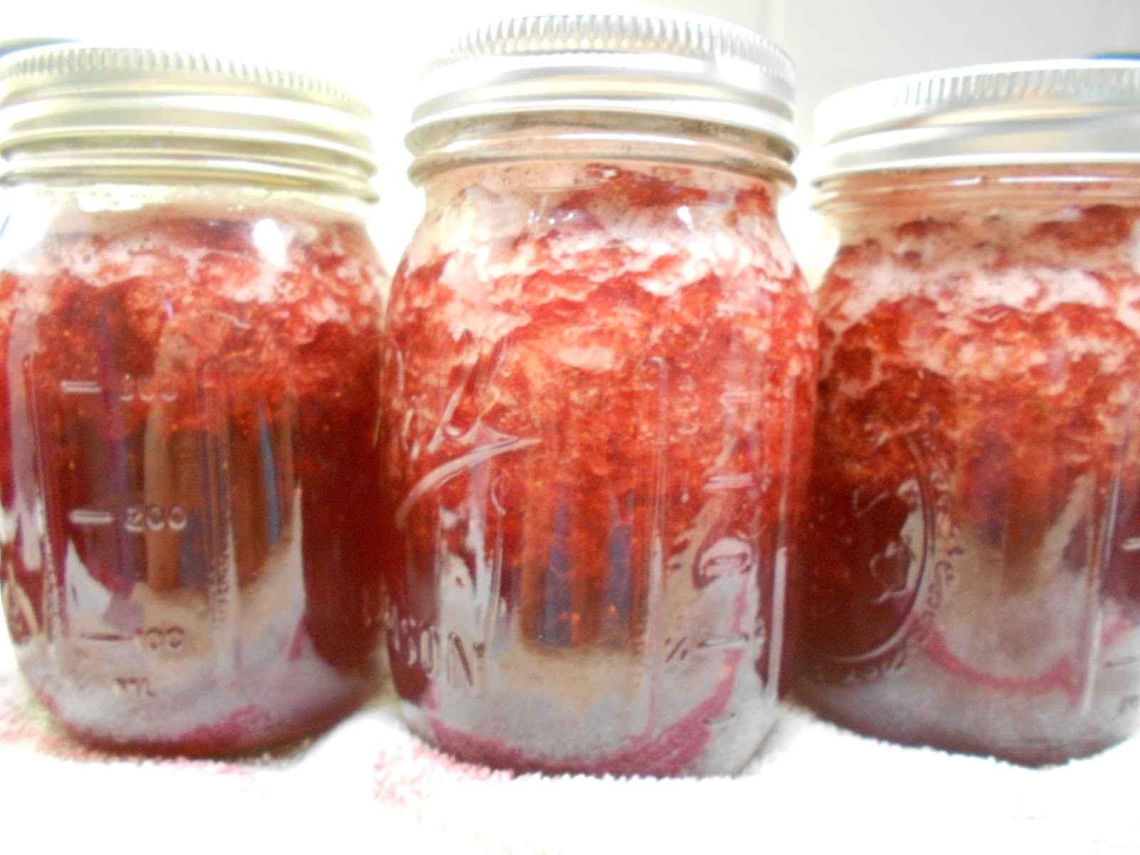 Here's my jam jars getting a nice boiling bath. It's so exciting to here the lid pop and know that the can is sealed. It was so easy to can using a water bath. I know I won't be able to can low acid items this way, but I'm perfectly fine with that.